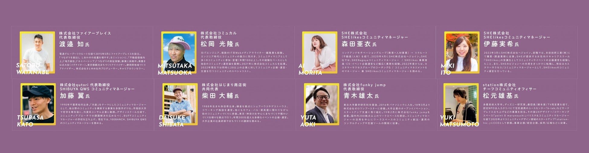 「つながり」「コミュニティ」「場づくり」といったキーワードに興味関心がある皆さん。ぜひご参加いただき、コミュニティマネジメントという新しい事業領域と、コミュニティマネージャーという新しい職域のリアルに触れてみませんか。