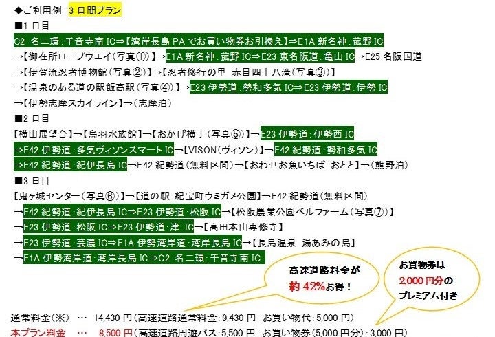 ③販売プラン・価格 高速道路周遊パスとお買い物券がセット