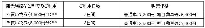 ③販売プラン・価格 高速道路周遊パスとお買い物券がセット