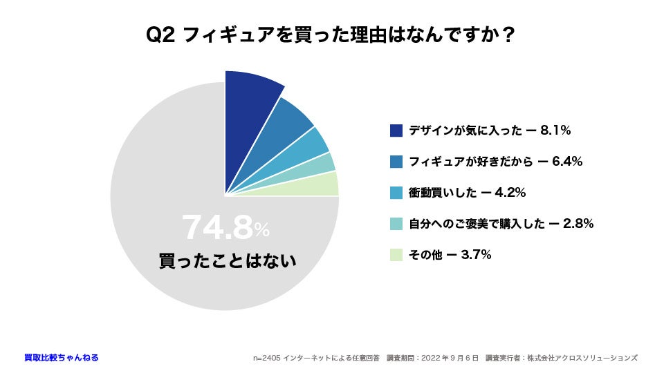 そこで、株式会社アクロスソリューションズと株式会社浜屋が共同運営している買取比較ちゃんねる(URL:https://www.hamaya-corp.co.jp/media )は、10歳〜60歳以上の男女2405人を対象に「フィギュアに関する意識調査」を実施しました。