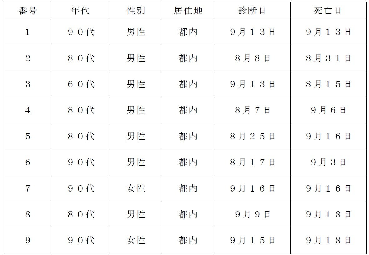 新型コロナウイルスに関連した患者の死亡について business Twitter Facebook はてブ Pocket LINE コピー 2022.09.21 この記事は約1分で読めます。 都内で新型コロナウイルスに感染した方が死亡されましたのでお知らせします。 お亡くなりになった方のご冥福をお祈り申し上げます。 ※ 患者・御家族の人権尊重・個人情報保護に御理解と御配慮をお願いします。