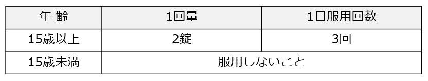 次の量を、食後なるべく30分以内に、水またはお湯で、かまずに服用すること。