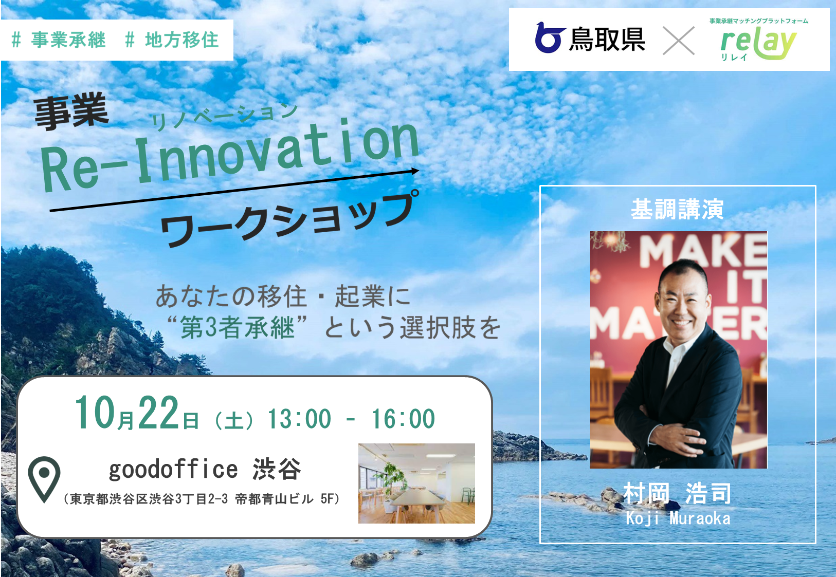 ※「”とっとり×後継ぎリノベータ―”プロジェクト」:https://relay.town/local/tottori/program/