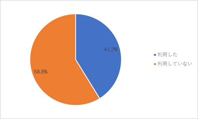 1年以内に図書館を利用しましたか?の質問に利用したと回答した人が41.2%、利用していないと回答した人が58.8%という結果でした。