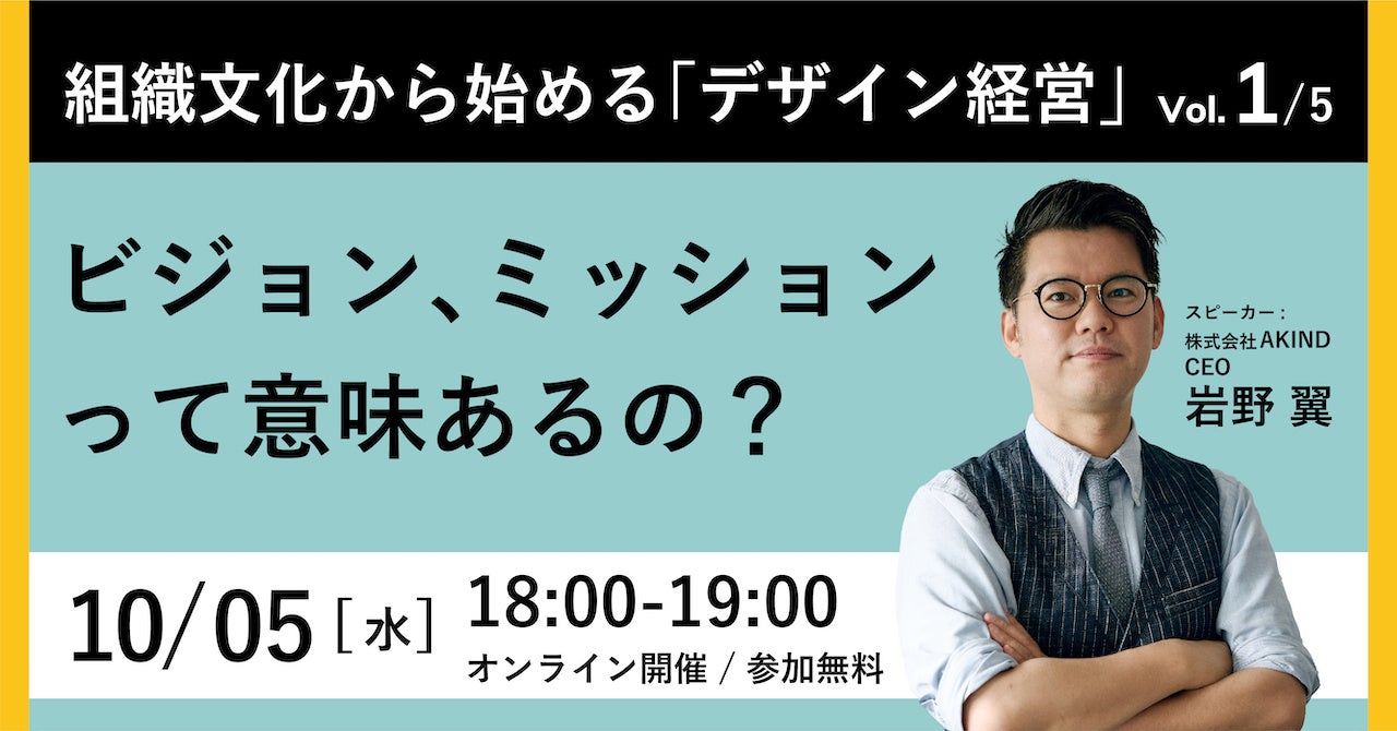 多くの経営者、リーダーの方からの声を受けて、今回のテーマは生まれました。「ビジョン、ミッションって、本当に意味があるの?」- 経営者の皆様であれば、一度は疑問に思ったことがあるのではないでしょうか。ビジョン、ミッションを定めることの意義や、組織文化との関係性について、詳しく語ります。デザイン経営を進めるにあたっての第一歩として参考にしてください。