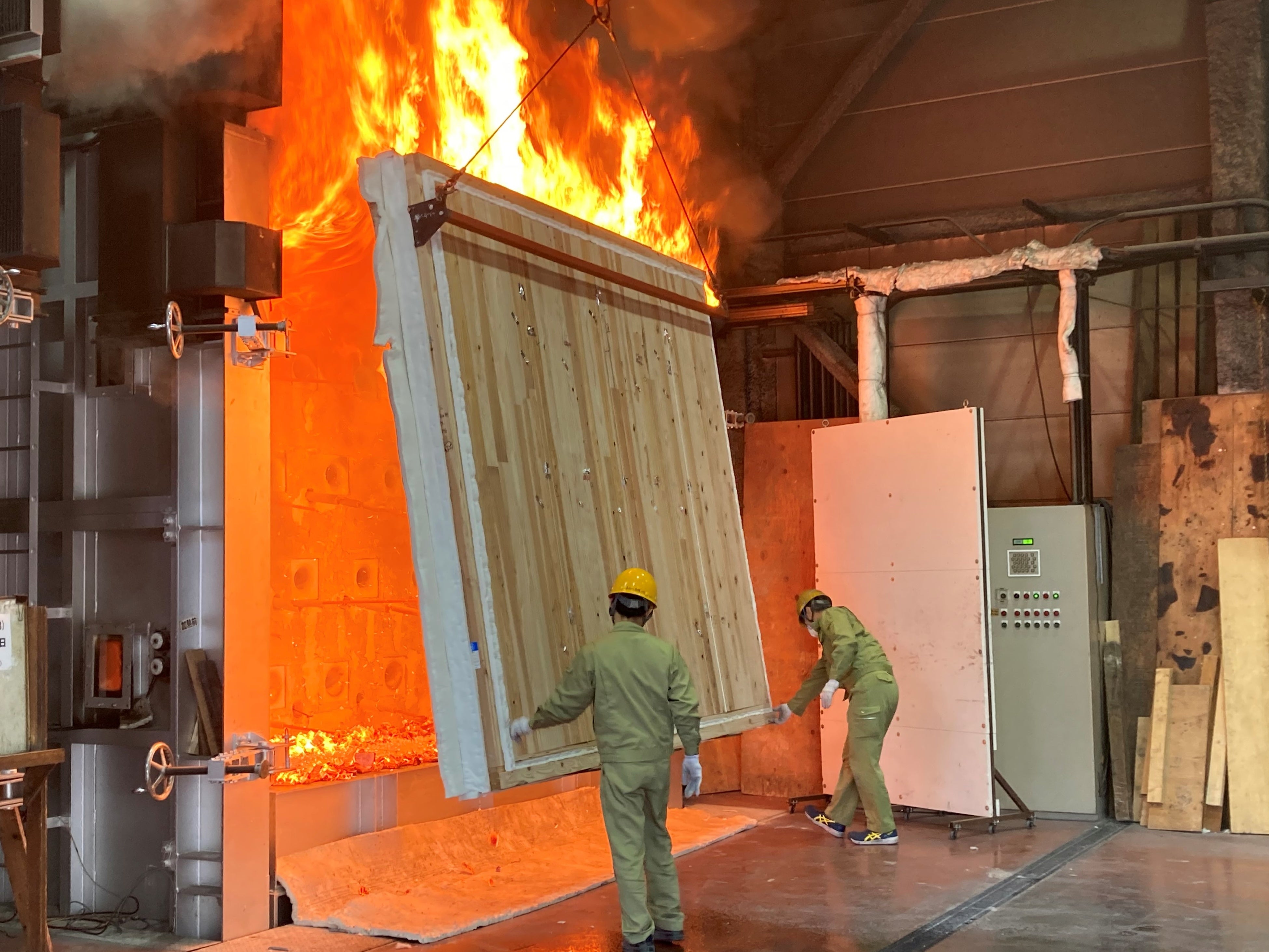 〈大臣認定を取得した、60㎜厚、3層3プライのCLTパネルの耐力壁のCG〉