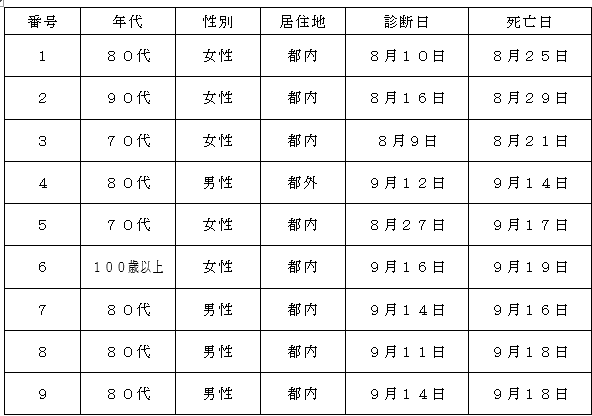 新型コロナウイルスに関連した患者の死亡について business Twitter Facebook はてブ Pocket LINE コピー 2022.09.24 この記事は約1分で読めます。 都内で新型コロナウイルスに感染した方が死亡されましたのでお知らせします。 お亡くなりになった方のご冥福をお祈り申し上げます。 ※ 患者・御家族の人権尊重・個人情報保護に御理解と御配慮をお願いします。