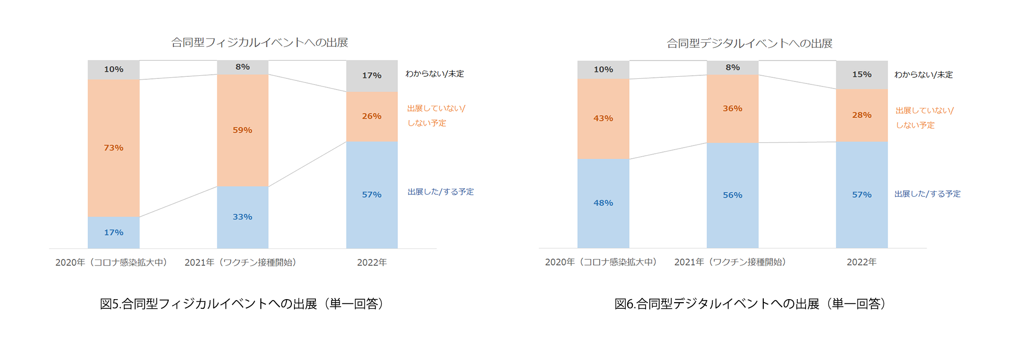- フィジカルイベントへの出展意向が回復している一方、デジタルイベントへの出展意向も旺盛