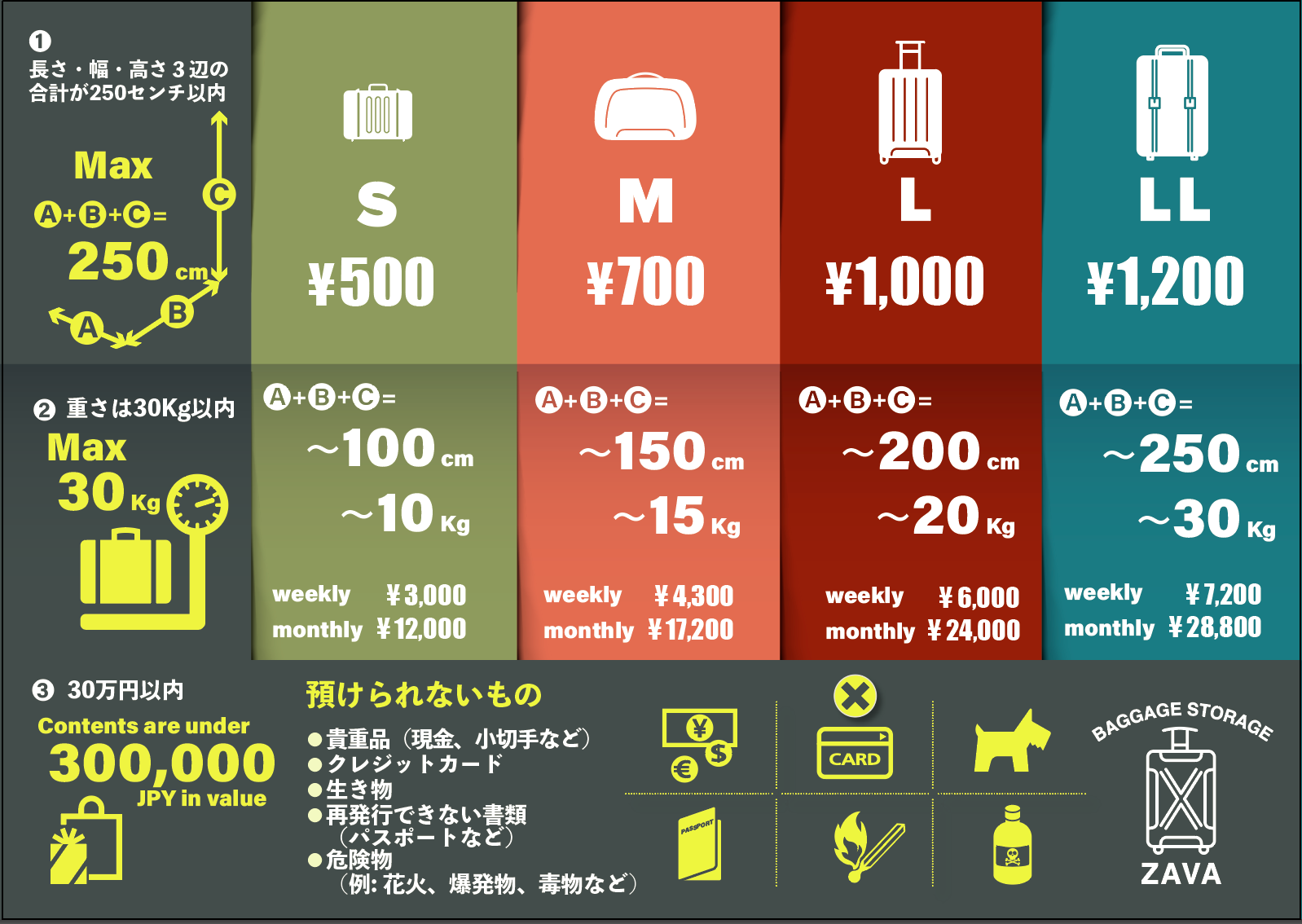 コインロッカーに入らない大型のお手荷物でもお預かり可能です。