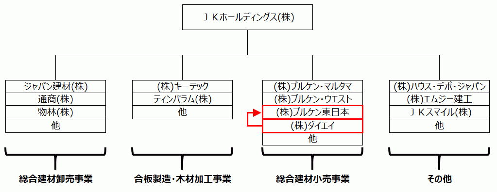 JKホールディングスグループがグループ内再編を実施(ブルケン東日本がダイエイを吸収合併)