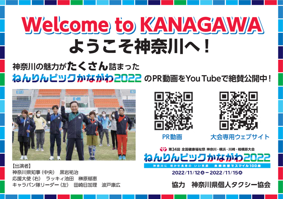 ○ ねんりんピックかながわ2022のロゴやマスコットキャラクター「かながわキンタロウ」、交流大会全32種目の開催市町が分かるマップがデザインされています。