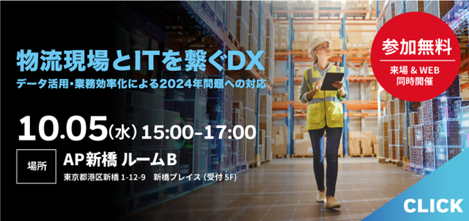 日本ハネウェル株式会社(東京都港区 代表取締役:藤井 康)は、SOTI Japan 株式会社との共催により、2022年10月5日(水)15時より「物流現場とITを繋ぐDX データ活用・業務効率化による2024年問題への対応」セミナーを開催いたします。参加方法は、来場またはオンラインのどちらでも可能です。