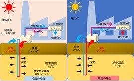 ※2:地中熱の利用とは、夏場は外気温度よりも地中温度が低く、冬場は外気温度よりも地中温度が高いことから、この温度差を利用して効率的な空調運転(冷暖房)を可能とするシステムのこと