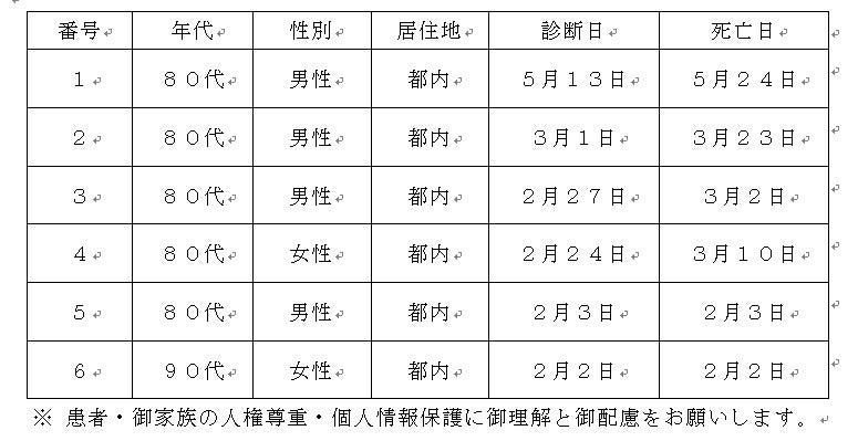 新型コロナウイルスに関連した患者の死亡について business Twitter Facebook はてブ Pocket LINE コピー 2022.06.01 この記事は約1分で読めます。 都内で新型コロナウイルスに感染した方が死亡されましたのでお知らせします。 お亡くなりになった方のご冥福をお祈り申し上げます。