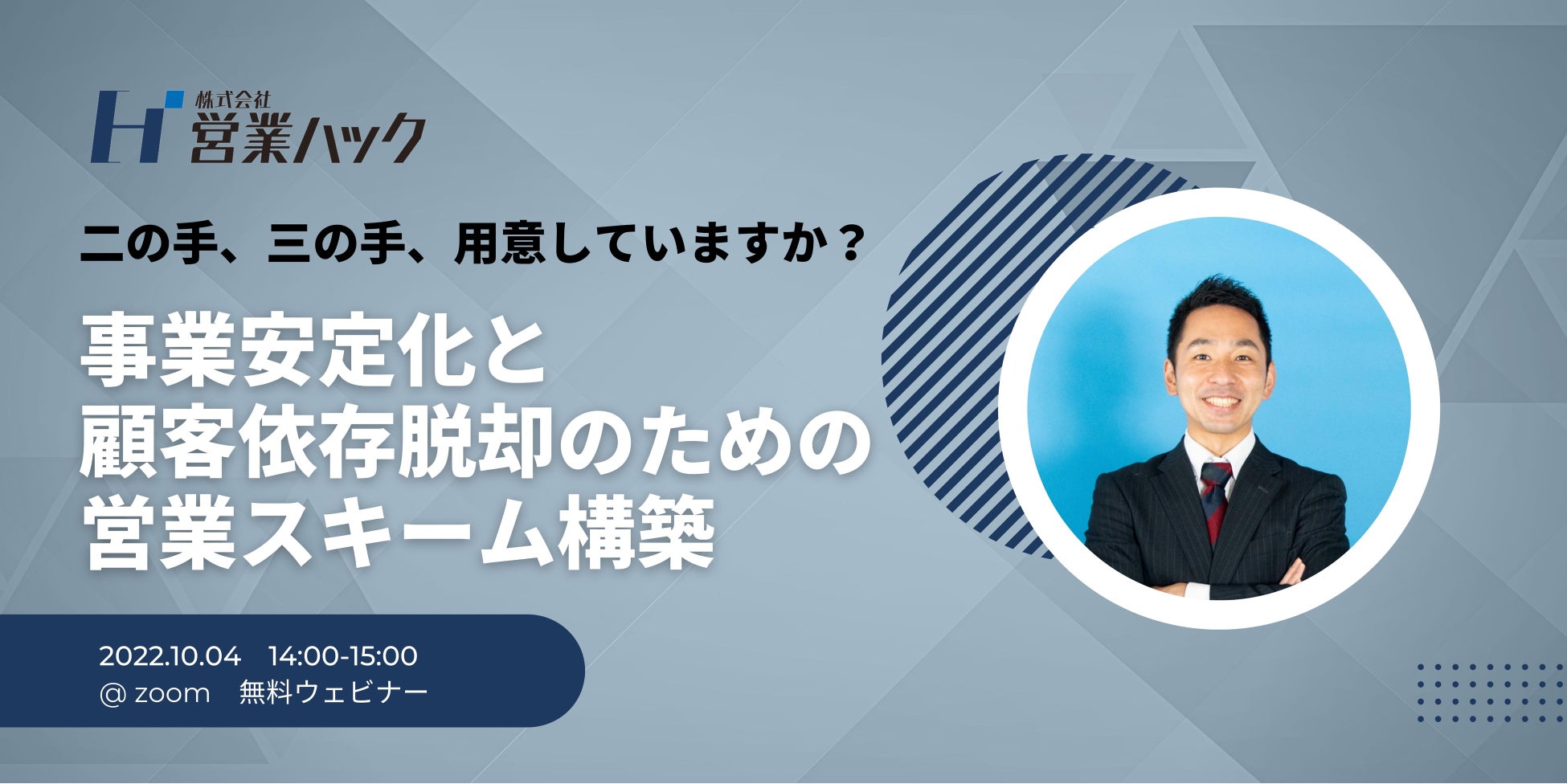 経営の二の手、三の手、用意していますか?主要取引先に依存しない事業安定化営業スキーム構築ノウハウをお話します|10/4(火)14:00〜無料ウェビナー
