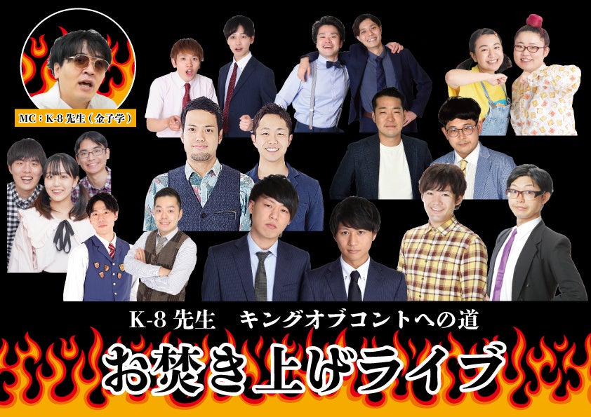 そんな中、惜しくも準々決勝までK-8メンバーが全員敗退という結果となりましたが、K-8先生は「来年のキングオブコントに向けて、今年で落ちたネタを焚き上げる」という思いで、K-8メンバーとともに「K-8先生 お焚き上げライブ」を開催します。