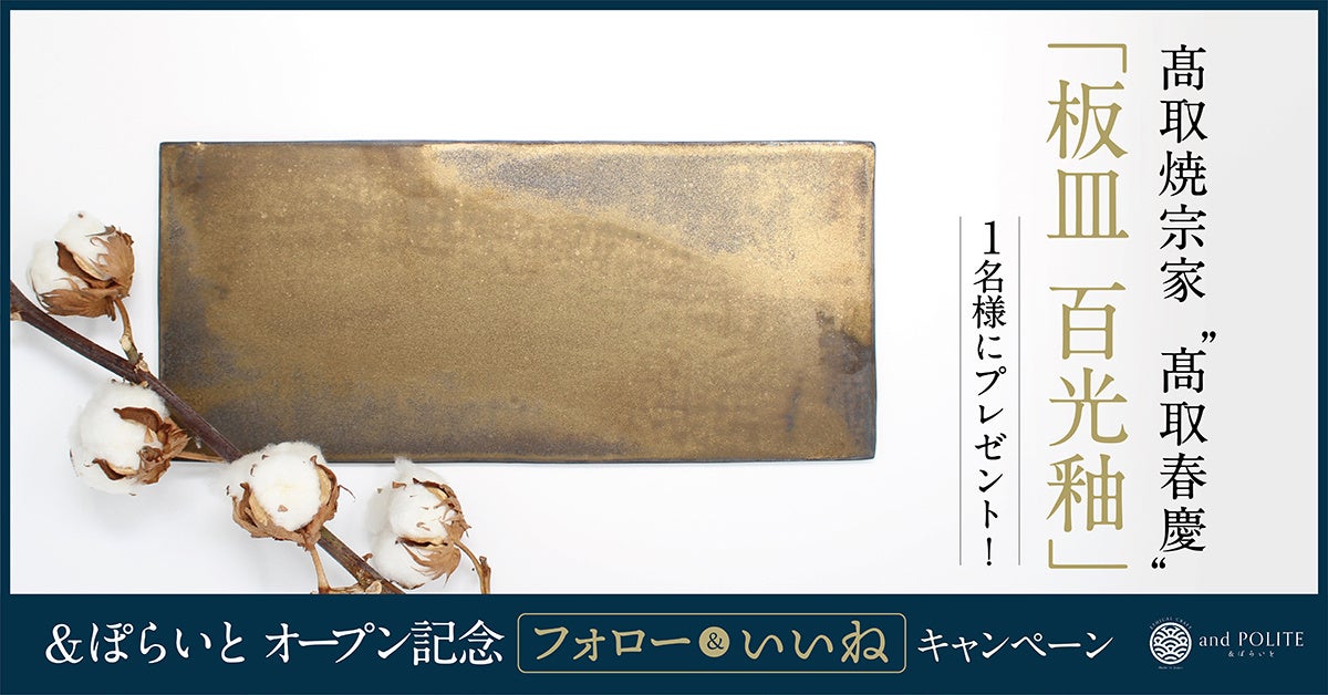 公式アカウントの開設を記念して、髙取焼宗家、春慶氏の板皿が当たる「フォロー&いいねキャンペーン」を実施します。詳しい内容はコチラから。