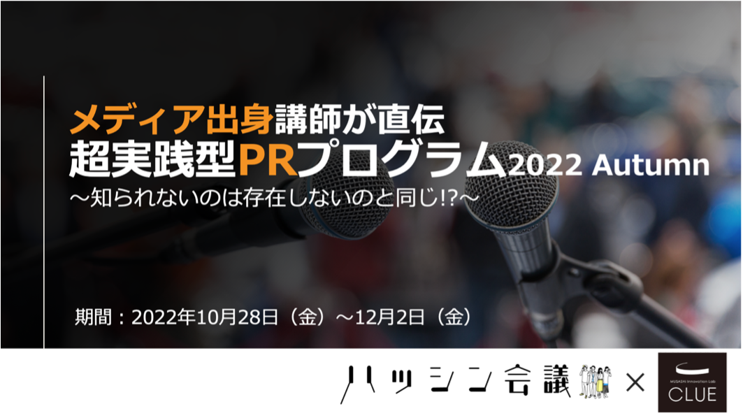 ムサシでは社会課題の解決に寄与する新規事業の創出に積極的に取り組んでおり、2018年12月には東三河発のイノベーション創出を目指す拠点としてMUSASHi Innovation Lab CLUE(以下CLUE)を設立しました。CLUEではインキュベーションプログラム「東三河 Innovator’s Gate」の開催や豊橋市の令和4年度「共創コミュニティ創出支援事業委託業務(以下、本事業)」の受託をはじめ、イノベーション創出に挑戦する企業やひとを生み出すエコシステム形成に注力してきました。その中で、0→1フェーズの事業加速にはメディア露出をはじめとする「広報PR力」が不可欠であると感じ、実際にPRのノウハウをゼロから学びたいという声も多くいただいたことから、今年2回目となる本プログラムを開催いたします。