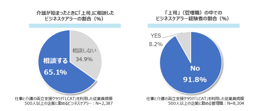 <調査>ビジネスケアラーの6割超は上司(管理職)に相談するが、約8割の管理職は基本的なビジネスケアラー対応リテラシーを持ち合わせていない