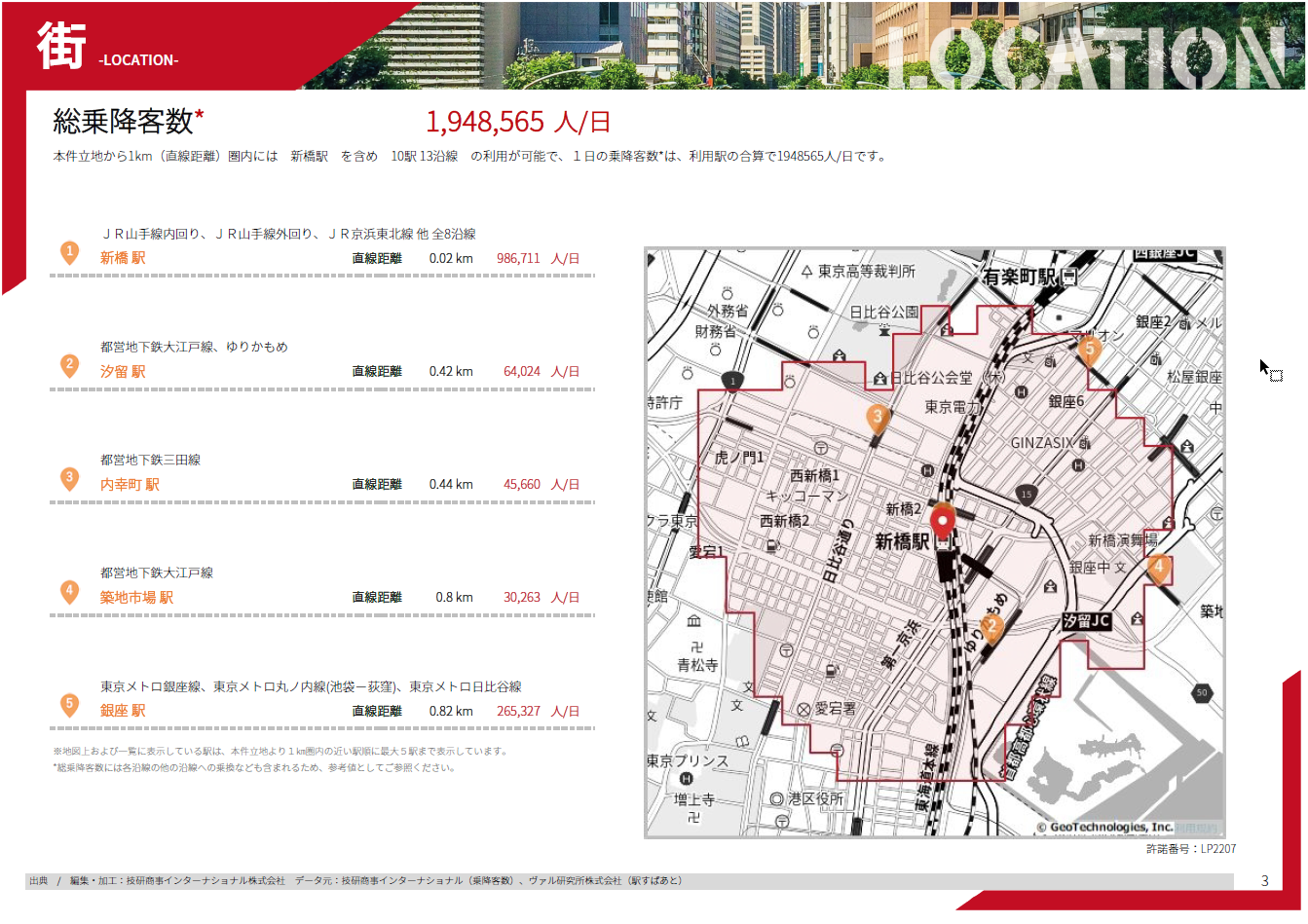 また、従来のExcelレポートと比べ、新たに駅別乗降客数や、商圏内の労働者特性(業種別の平均年収等)、毎月更新のフレッシュな企業・店舗情報等、出店立地の評価に役立つ項目をプラスしています。