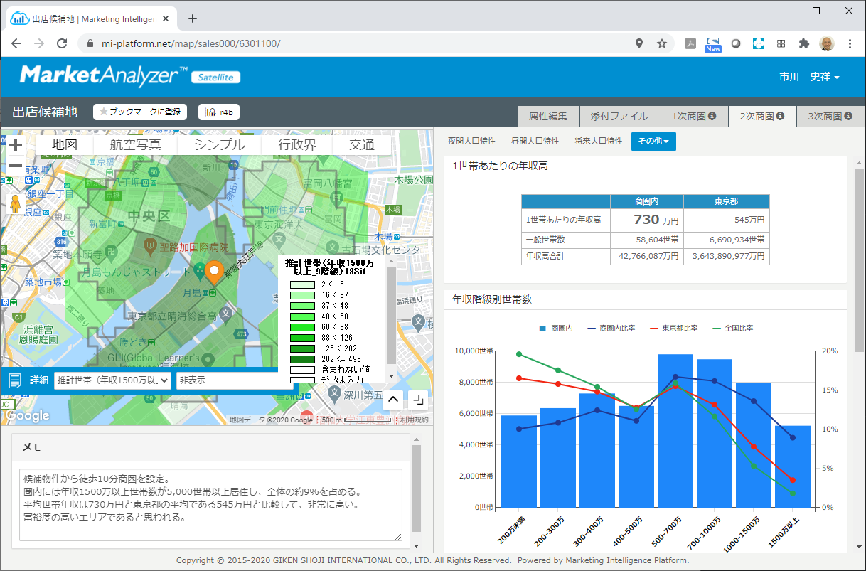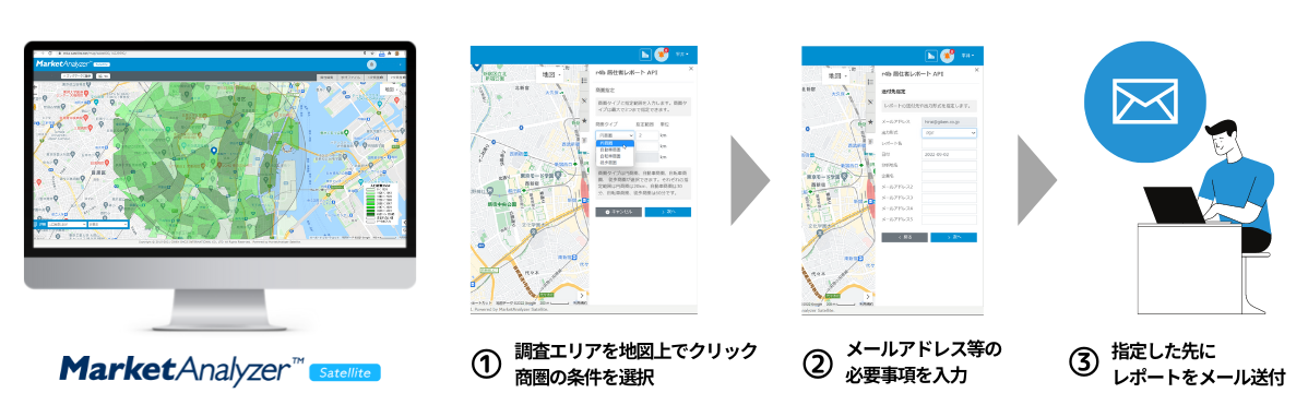 本レポートは、Webブラウザで容易に商圏分析が可能な当社GIS(地図情報システム)「MarketAnalyzer™ Satellite」の新バージョン『real estate edition』にて提供予定です。