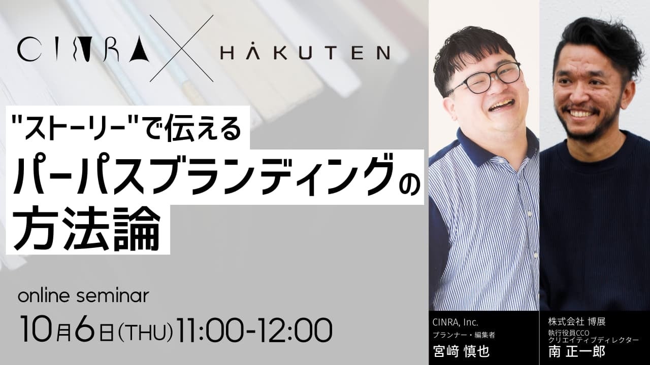 【10/6開催】CINRA×博展「“ストーリー”で伝えるパーパスブランディングの方法論」
