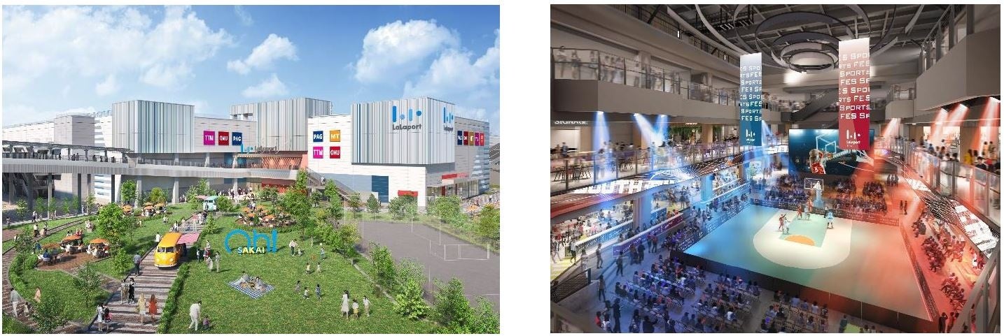 (左)三井ショッピングパーク ららぽーと 堺 外観 CG