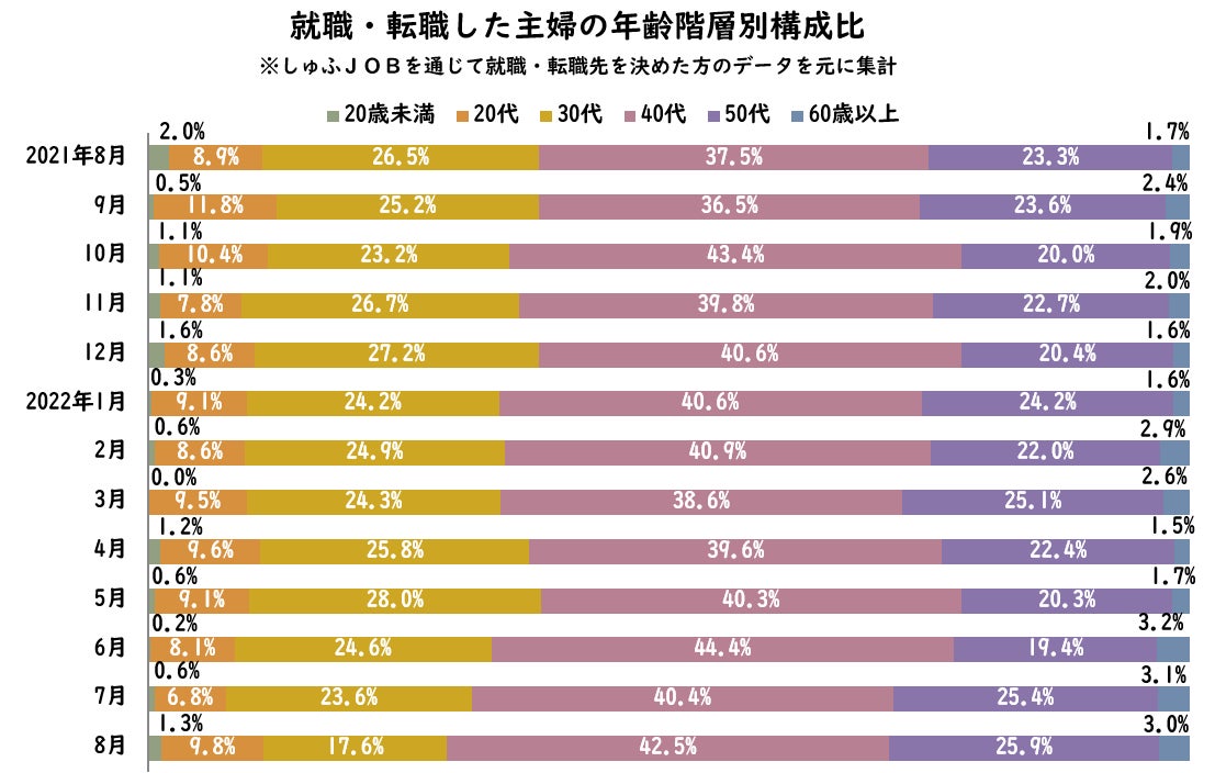 ビースタイルグループで主婦に特化した求人サイト『しゅふJOB』を運営する株式会社ビースタイル メディア(本社:東京都新宿区、代表取締役社長:石橋聖文)は、掲載求人から採用に至った採用データから算出した「転職主婦の平均年齢」を集計しました。