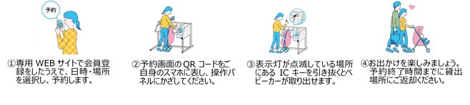 「もっと気軽に子供と外出できる社会を!」をコンセプトに、子育て世代がお子さまと気軽に外出できる社会の創造を目的とした、外出先でも便利に利用できる予約可能なベビーカーのレンタルサービスです。観光や旅行、帰省の際はもちろん、お買い物やランチなど短時間でも気軽にご利用いただけます。