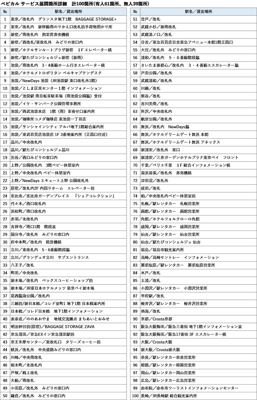 2021年4月22日にサービス開始した「ベビカル」は、2022年10月1日(土)に100箇所でのサービス展開となります。サービス展開箇所は下段「ベビカル サービス展開箇所詳細」またはベビカルのWEBサイト(https://babycal-jre.com)をご覧ください。