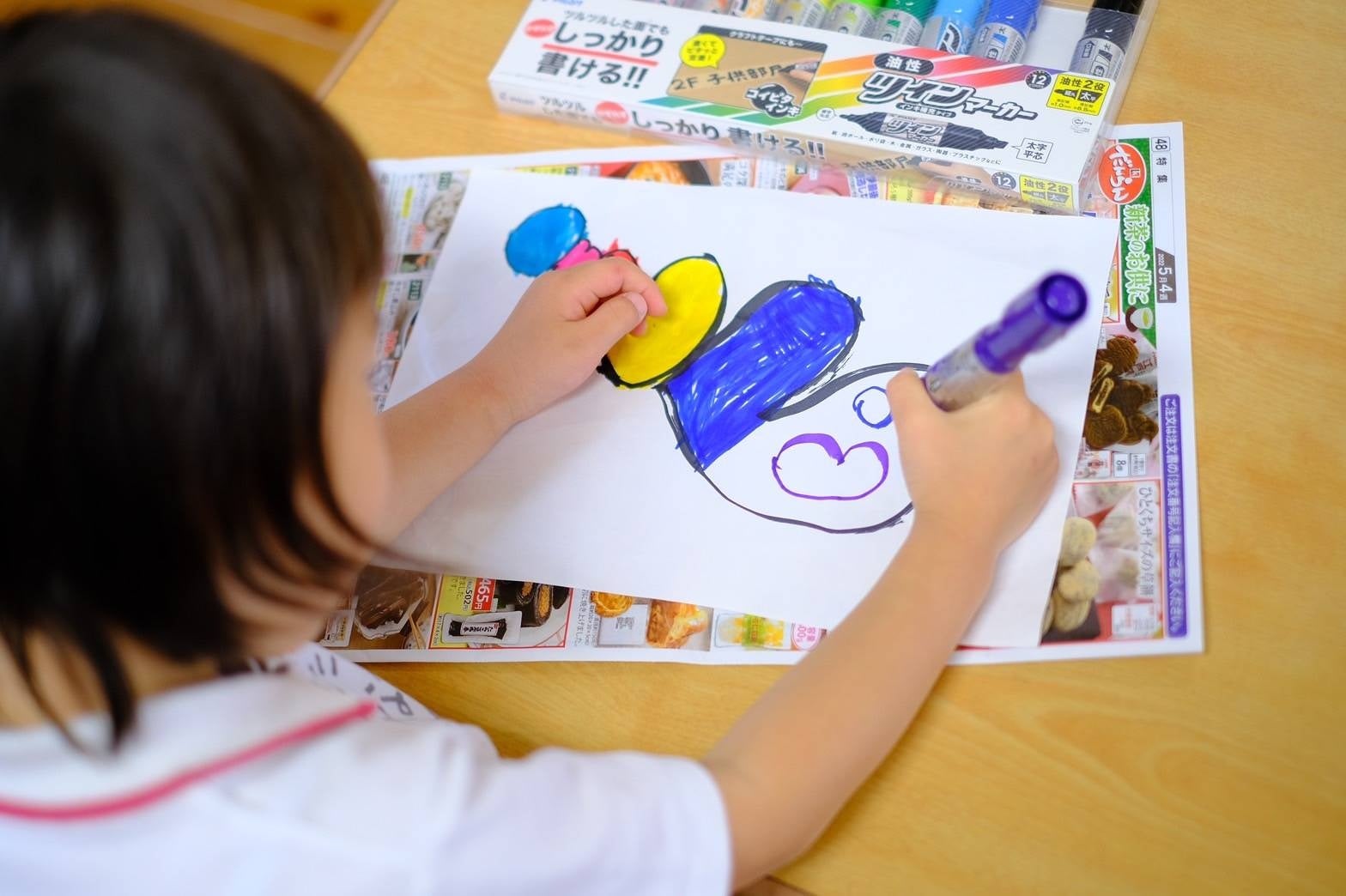 カラフルなペンに子ども達の創作意欲もグングン湧いています。