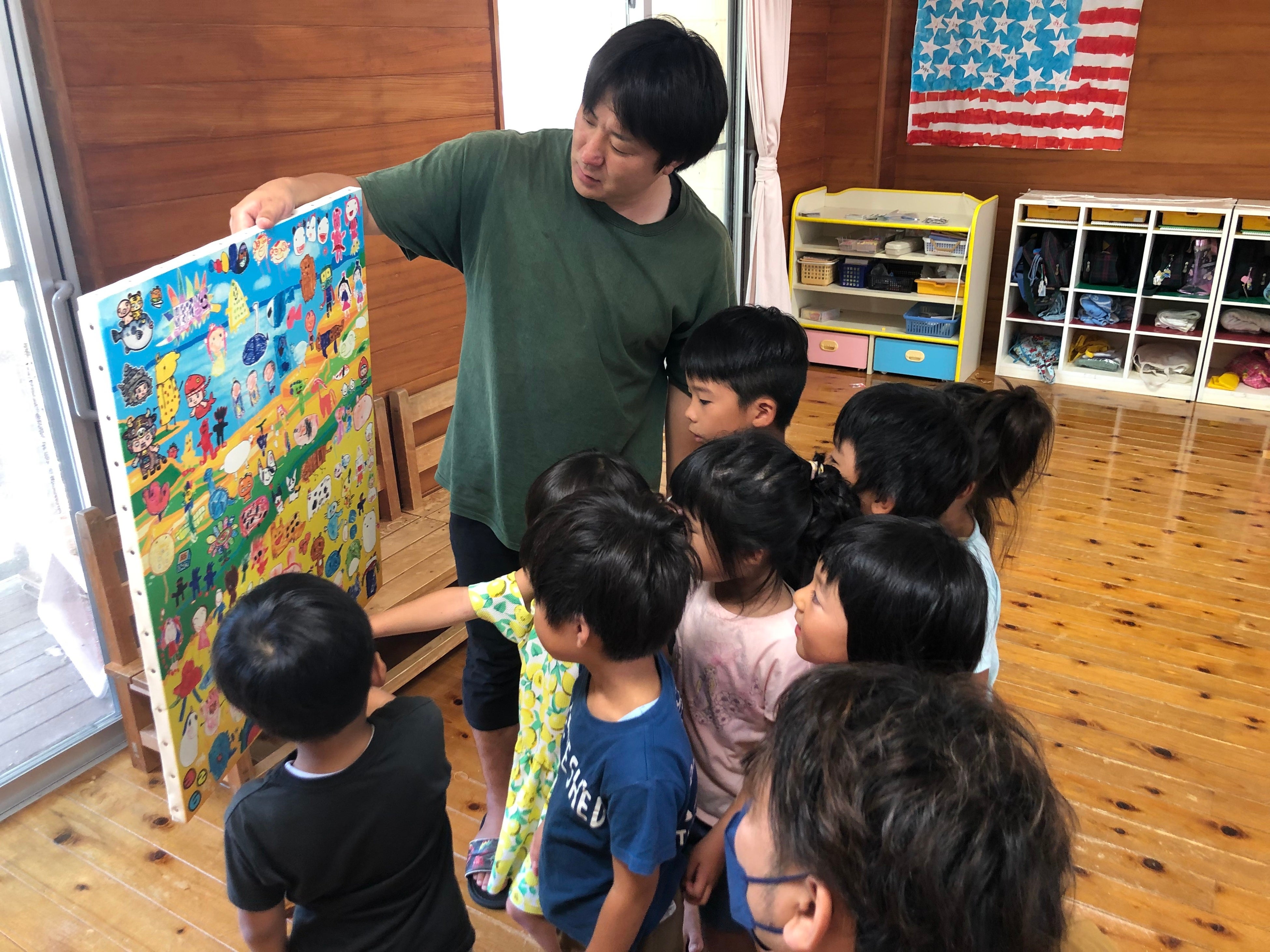 今回の取り組みの中心となったのは、玄海町ふるさと納税のサンクスレターでおなじみのイラストレーター326(ナカムラミツル)さん、そして、「あおば園」「ふたば園」の園児たちです。