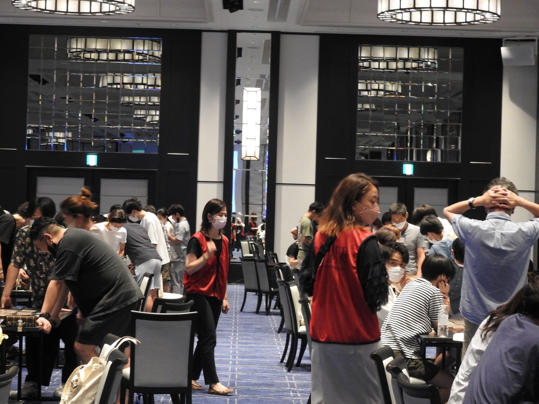 まず、幹事様から参加者全体に向けて、今回のチームビルディングのイベントの目的をご説明いただきました。これによりコミュニケーションの重要性への理解と一人ひとりの積極性に差が生まれます。加えて、上位3チームに豪華賞品が贈られることが紹介されると、みんな真剣なまなざしに…。一刻も早く目の前のスーツケースに取りかかりたい様子が伝わってきました。チームのモチベーションが一気に高まります。