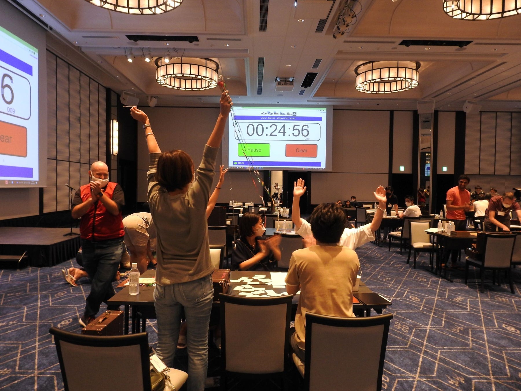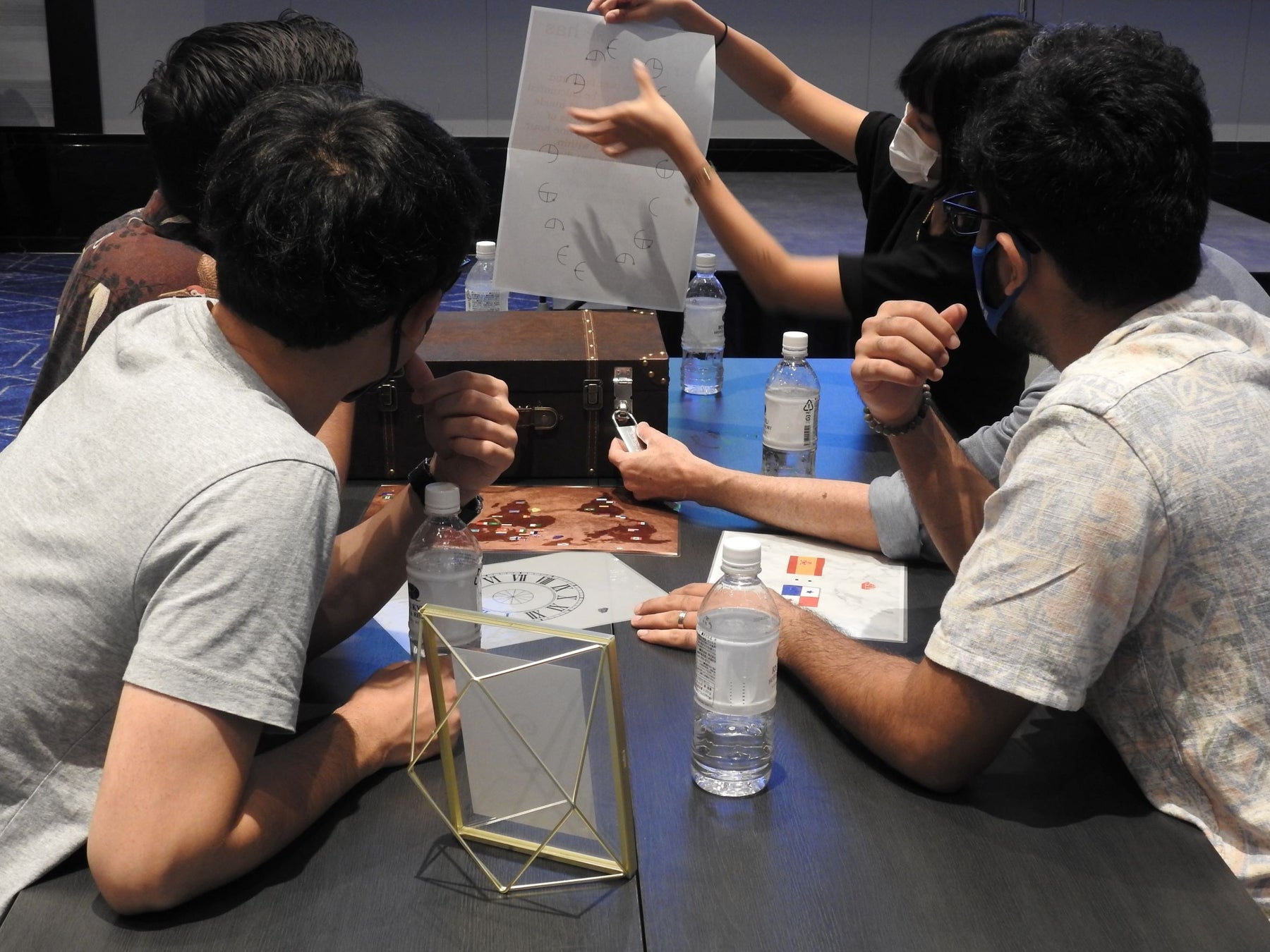 最初にゴールしたチームから、歓声と勝利のクラッカーが鳴り響くと、他のチームも3位入賞を目指してますますヒートアップしていきます。パズルの中には、焦れば焦るほど見えてこない仕掛けも隠されているため、冷静な目も不可欠。メンバーそれぞれが得意分野で分担しながら、チームに貢献していたようです。