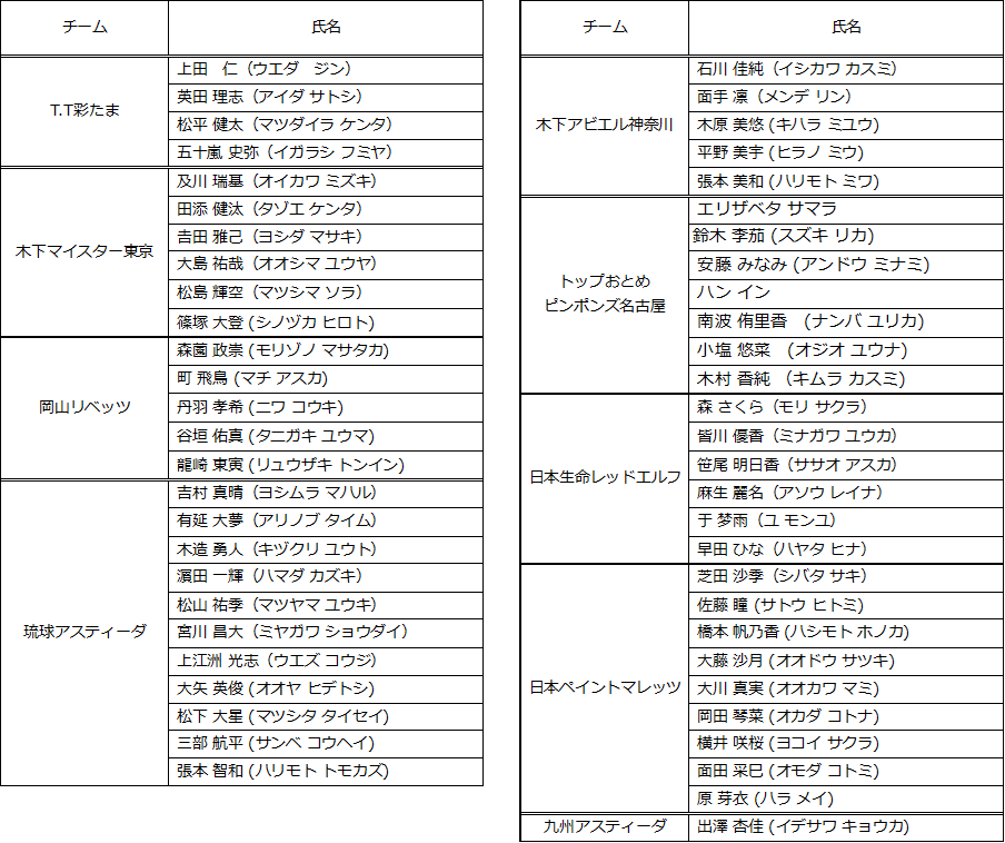 Tリーグでは、2022-2023シーズン 登録完了選手を以下の通りお知らせいたします。