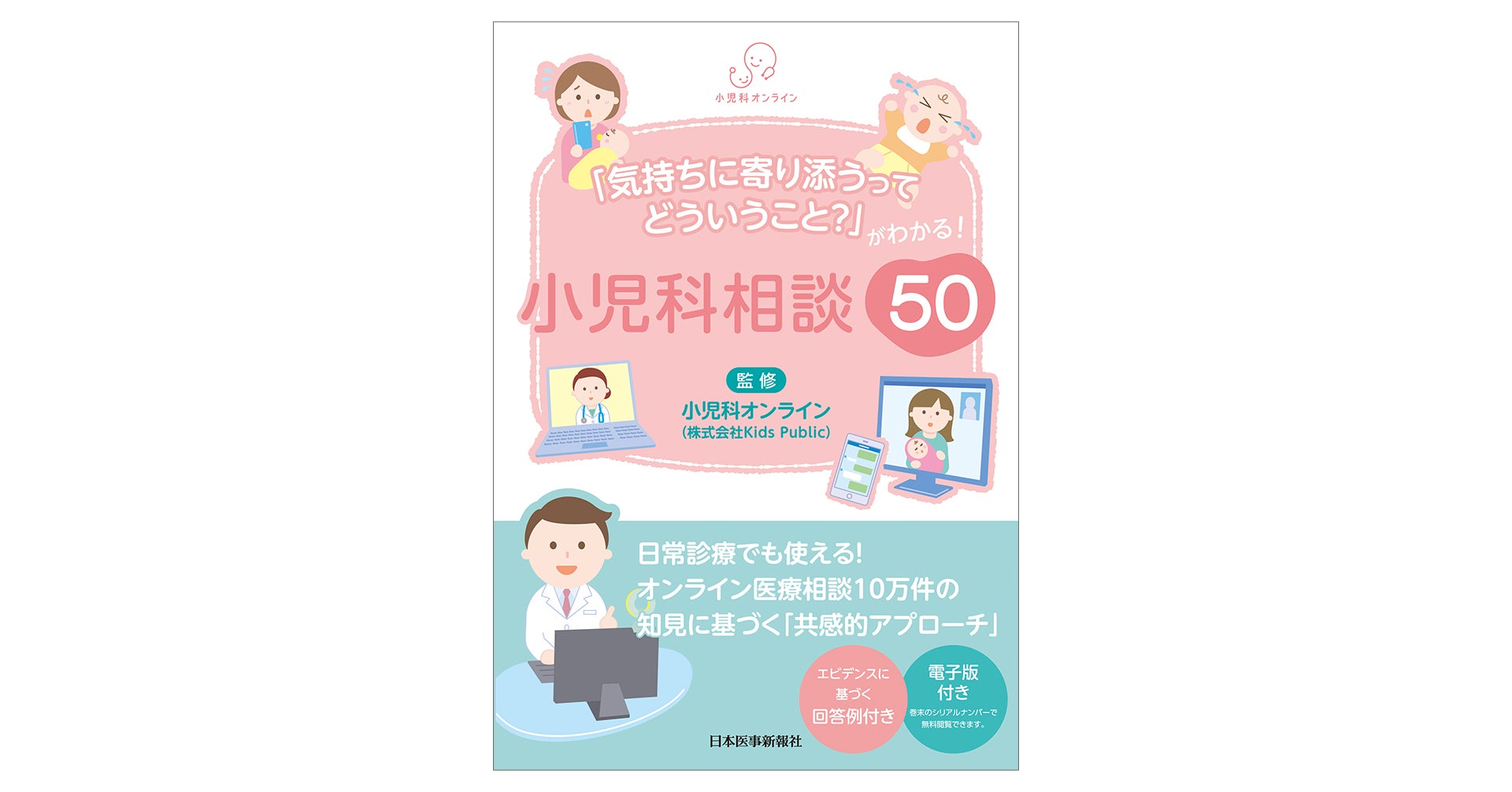 本書は、オンライン医療相談「小児科オンライン」に、これまでに寄せられた10万件以上の相談とその回答という知見に基づいて執筆されました。執筆および監修は、小児科オンラインでの相談に対応している現役の小児科医が行なっており、子どもの健康相談や育児相談に関わる方には必見の一冊です。