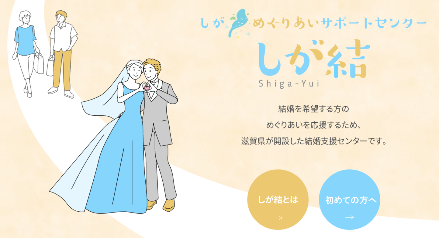 『しが結』は、結婚希望者のめぐりあいを応援するため、滋賀県が開設したオンライン型の結婚支援センターでAIマッチングシステムによるパートナー探しのお手伝いします。
