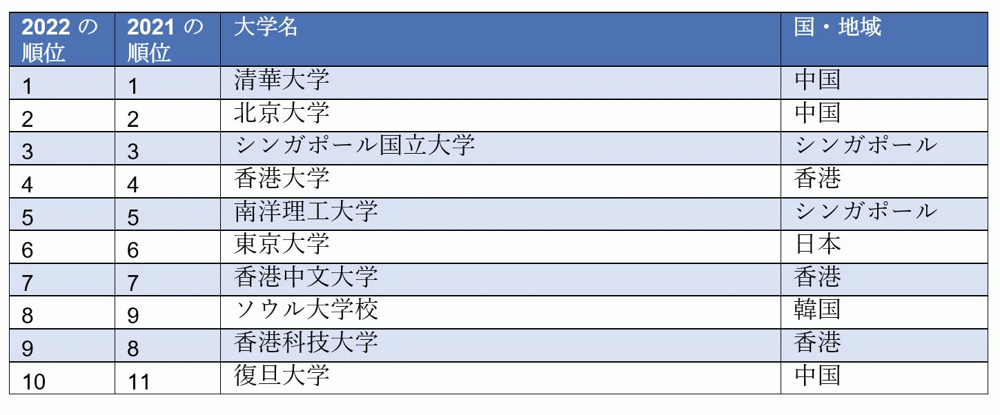 Asian University Rankings 2022 https://www.timeshighereducation.com/world-university-rankings/2022/regional-ranking Click here for the evaluation method of the Asian University Rankings 2022 https://www.timeshighereducation.com / world-university-rankings / asia-university-rankings-2022-methodology