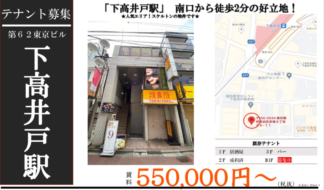 賃料50万円代で始める新規ビジネスに!事業拡大にも是非!