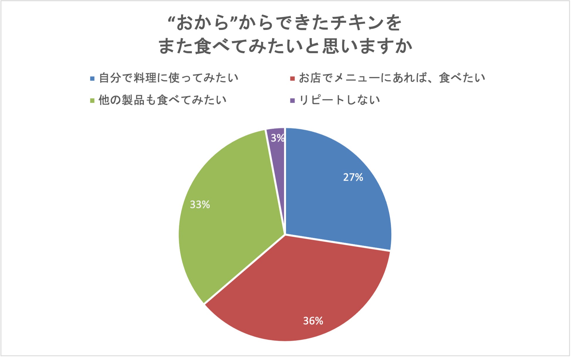 有楽町microでのポップアップイベントで、OKARATメニューを注文いただいた方を対象にアンケート調査を実施。97%のお客様よりリピート意向の評価を頂きました。