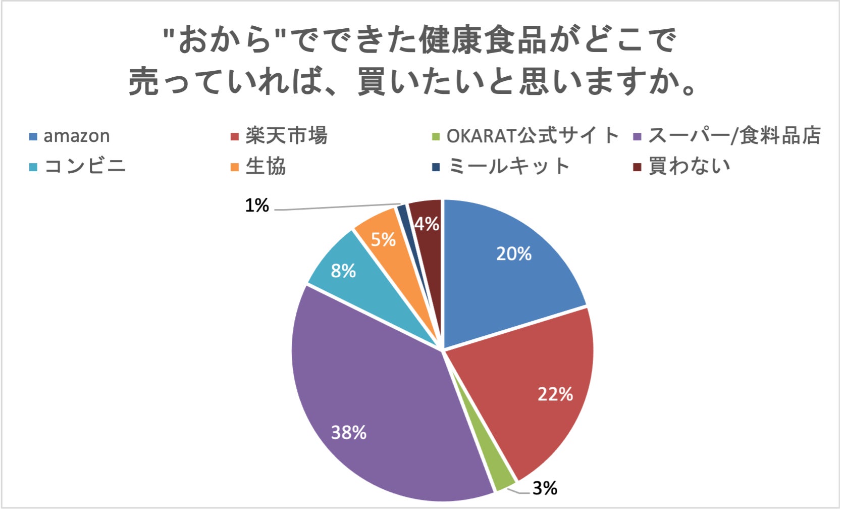 また、販売チャネルに関して「スーパー、食料品店」を求められる方が38%と多いが、「Amazon」20%、「楽天」22%で、ECモールでのニーズも高いとの結果がでました。