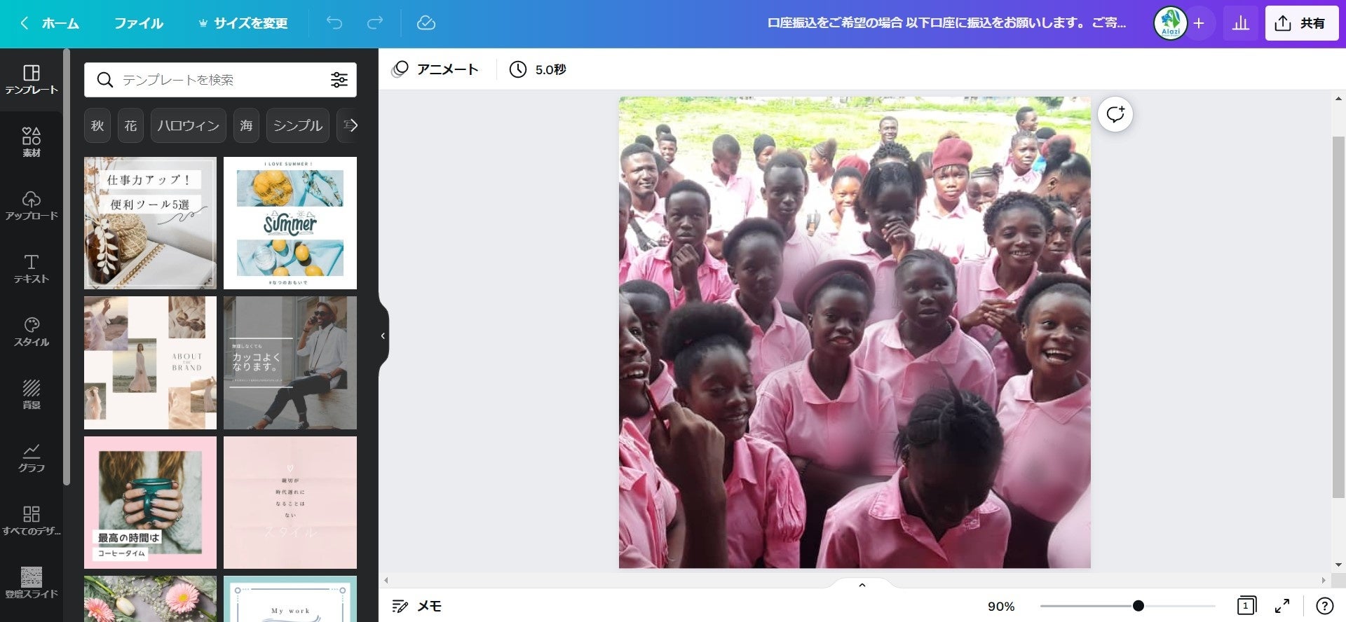 また、私たちのような教育支援や子どもに関わるNGOは、学校のエンブレムや地域の場所がわかる看板など、特定されうるような情報を保護するというポリシーを掲げています。広報用に現地の学校や子どもたちの写真を使用したいときには、ぼかしを入れる作業が欠かせないので、簡単にぼかしを挿入できるCanvaは非常に重宝しています。