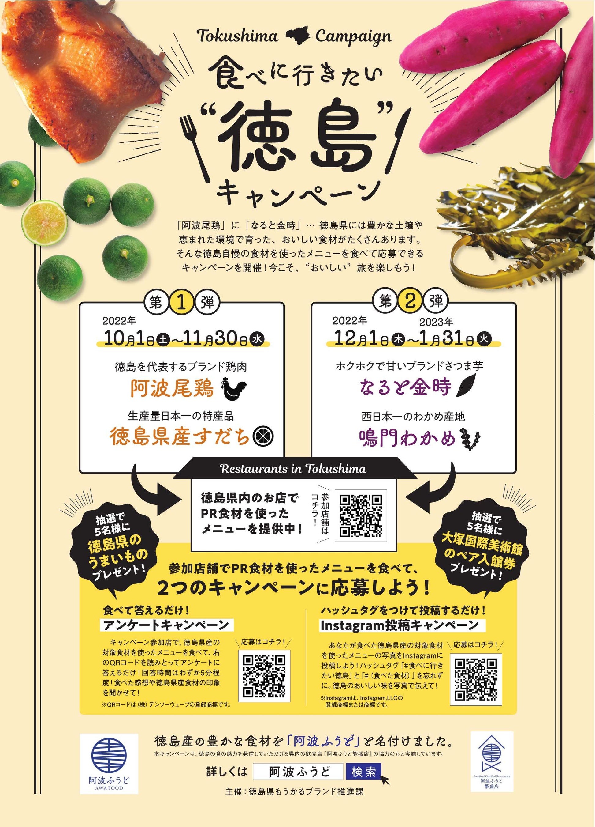 また、参加店舗でお食事いただいた方を対象に、抽選で豪華賞品が当たる「インスタキャンペーン」「アンケートキャンペーン」を実施いたしますので、是非徳島に食べてに来て、応募してください。