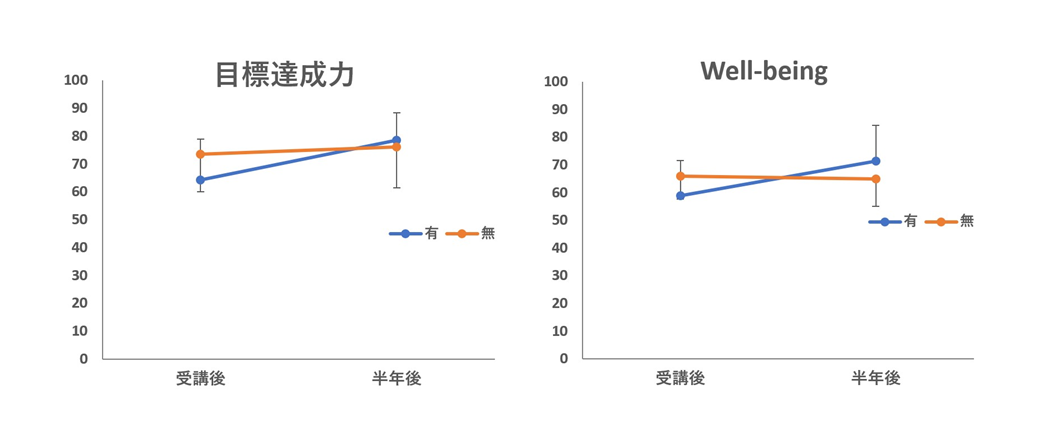 今回、筑波大学アスレチックデパートメントの協力により、【『頂点への道』講座アチーブメントテクノロジーコース】が「Well-being」の向上をはじめ、受講生の皆様に与える肯定的な変化を可視化するべく、2021年10月より半年間の継続調査を実施いたしました。以下は調査結果です。