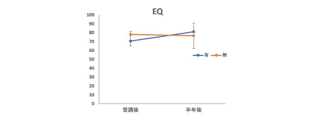 2021年8月の事前調査の結果、研修への継続的な参加が「目標達成力」「EQ」「GRIT」を向上させる可能性が示唆されておりましたが、2021年10月から2022年6月までの追跡調査の結果、アチーブメントテクノロジーコース受講後半年経過すると、「目標達成力」「GRIT」「Well- being」「EQ」が向上することがわかりました。
