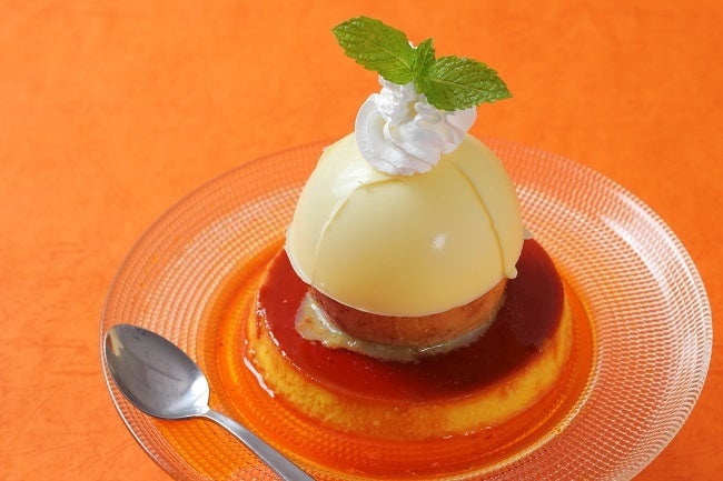 季節のカボチャを使い生クリーム、生乳を使った硬めのクラシックカボチャプリン。シナモンシュガー、バターで焼いた甘酸っぱい焼きリンゴにバニラアイスを添えて。