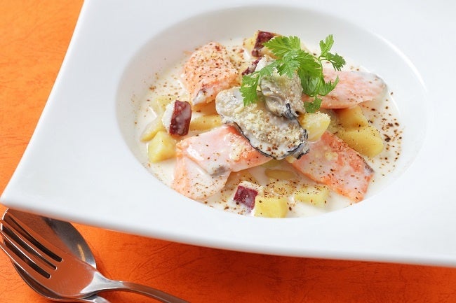 ▲牡蠣とサーモン さつまいものクリームソースじゃが芋のニョッキ 1,639円(税込)