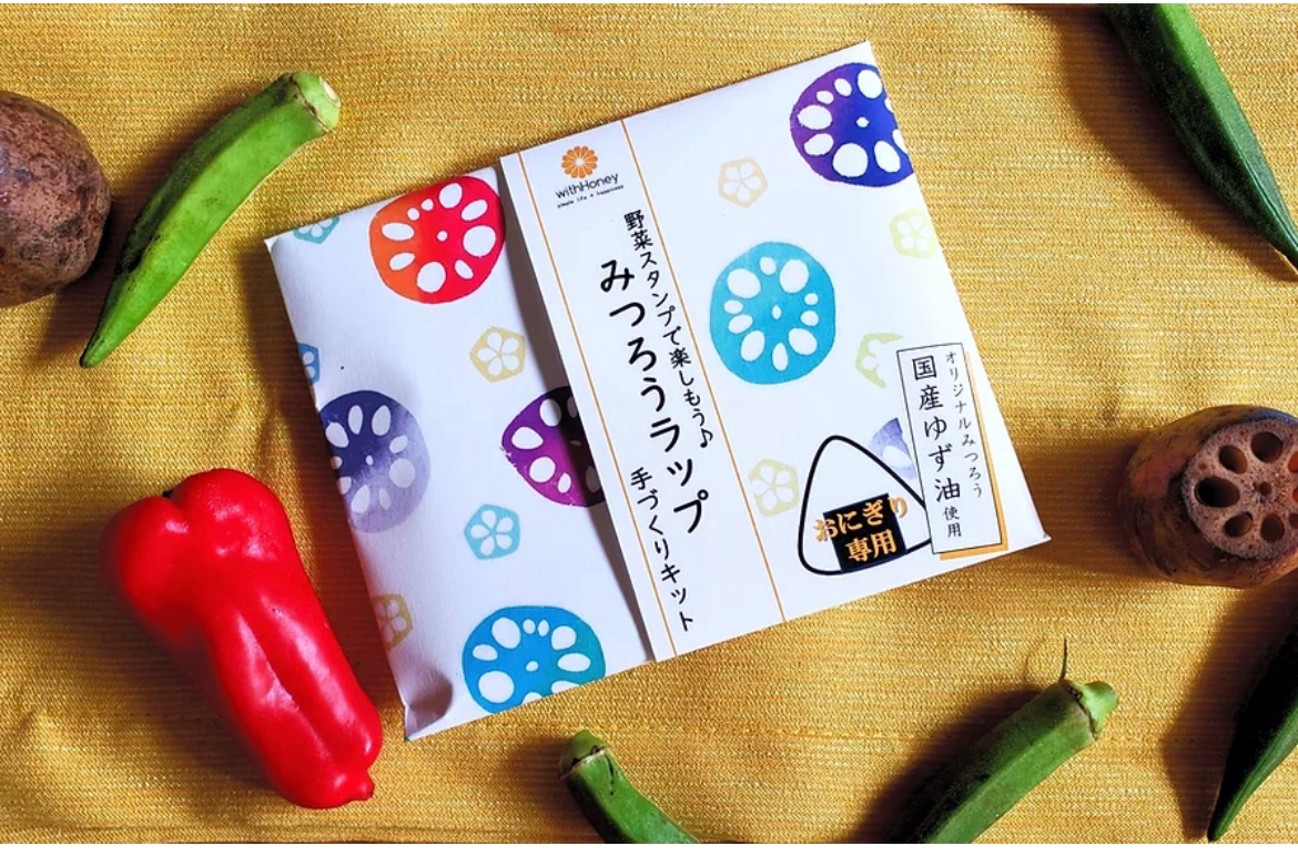 ・オリジナルみつろうラップ/農産物のセットをワークショップ参加の方にお渡し。