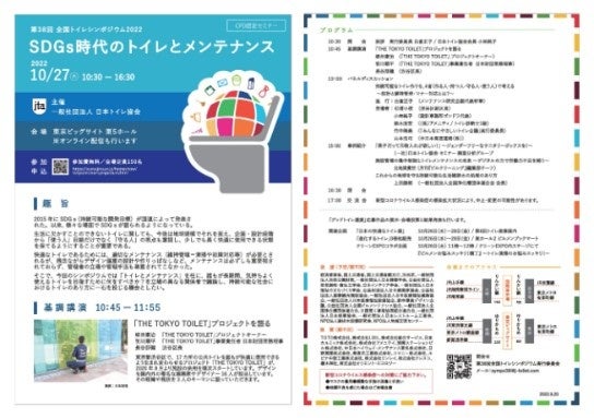 今年度のテーマは「SDGs時代のトイレとメンテナンス」、東京渋谷区の話題の公衆トイレ「THE TOKYO TOILET」プロジェクトの関係者などをお招きして、トイレとメンテナンスについて熱く語り合います。