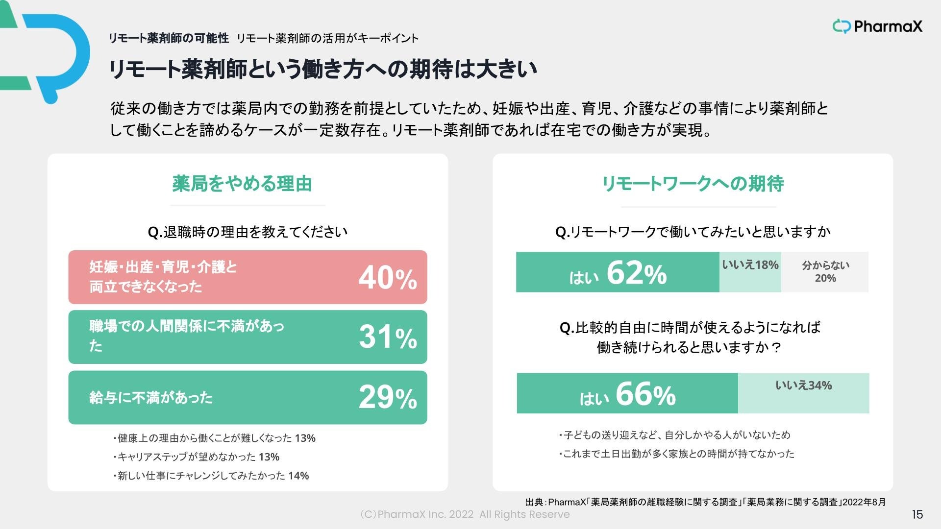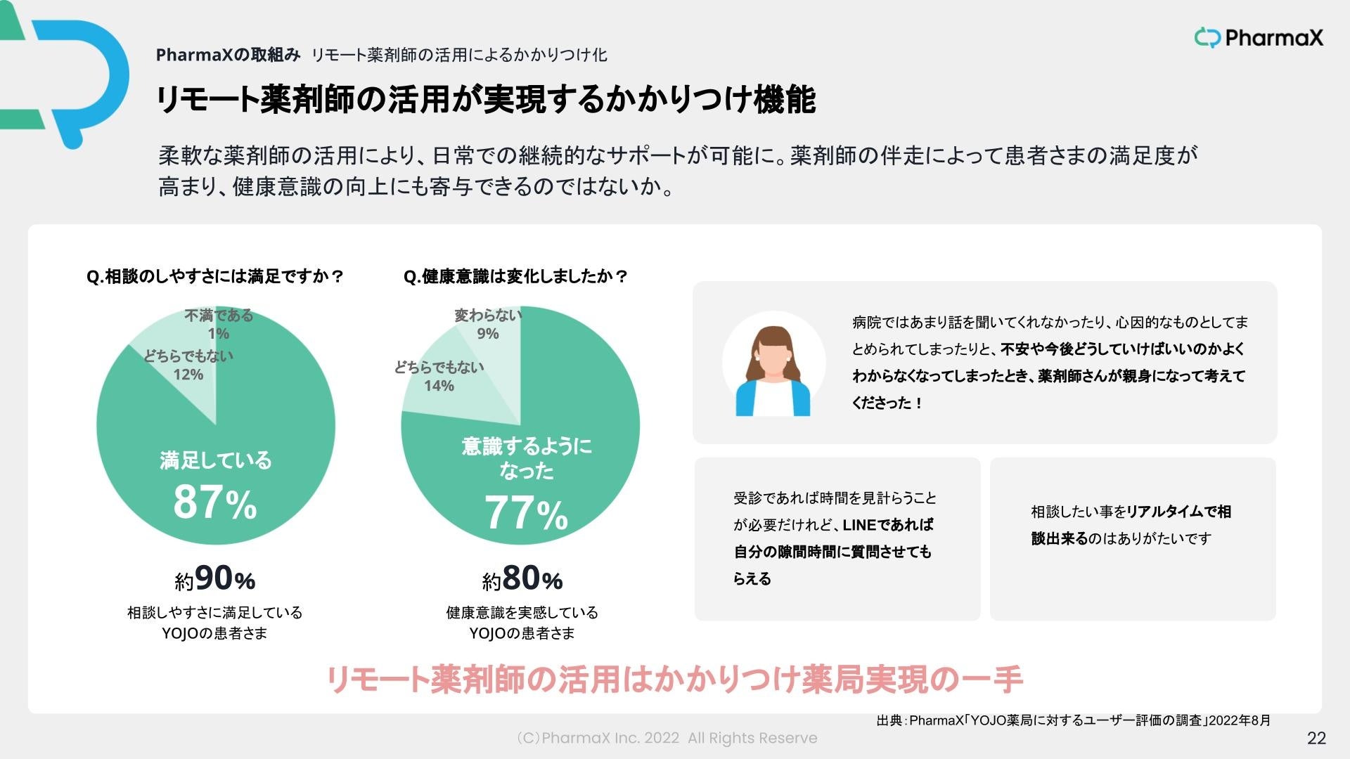 PharmaXは、自社薬局を中心にリモート薬剤師の活用と独自システムを開発することで新しい薬局オペレーションを構築し、次世代型「かかりつけオンライン薬局」を提供しております。薬局領域におけるDX事例についてご紹介できるほか、柔軟にパートナー企業様との取り組みをさせていただいております。今回、薬局事業者の取り組みに役立てていただくことを目的に、かかりつけ薬局実現の鍵となるリモート薬剤師の活用についてのリサーチレポート(ホワイトペーパー)を無料公開しました。